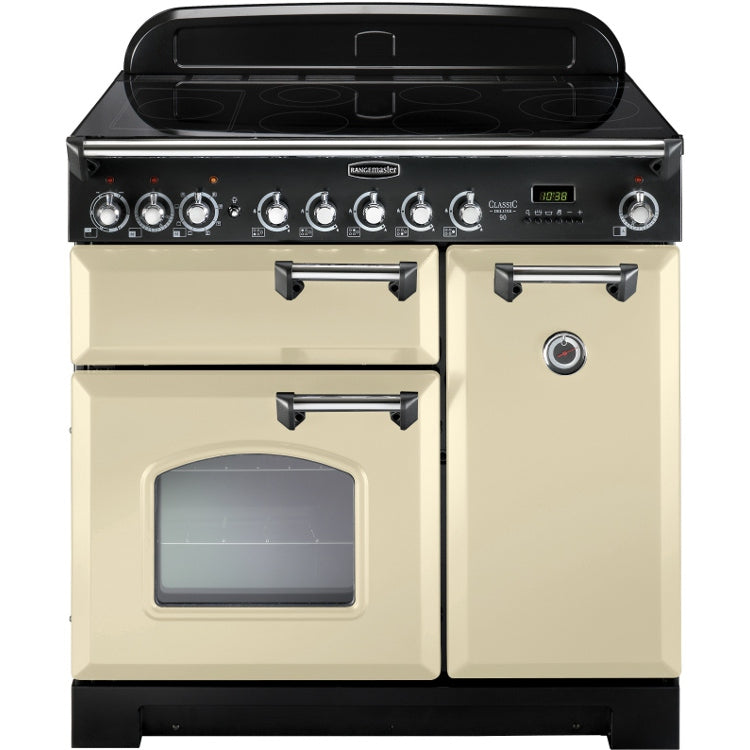 Rangemaster Classic Deluxe CDL90EICR/C - Cream/Chrome Range Cooker - 140L - A Rated