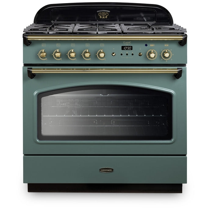 Rangemaster Classic FX CLAS90FXDFFMG/B - Mineral Green/Brass 90cm Range Cooker - Dual Fuel - A Rated